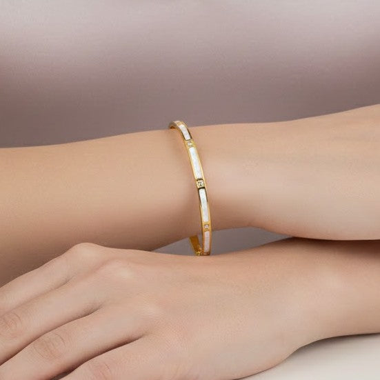 Bangle with Mother of Pearl Inlay & Crystals